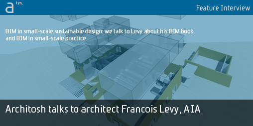 Earlier this year architect and educator Francois Levy, AIA, came out with his new book “BIM in Small-Scale Sustainable Design,” published by Wiley Publications. We were excited to hear from him, as Francois has been an encouraging reader of our online publication for many many years and it is always exciting to learn about what our many readers are up to.