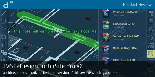 TurboSite was a hot ticket item at this year’s AIA National Convention in Denver, Colorado. It was the co-winner of this year’s BEST OF SHOW honors in the mobile category. Part of what makes this app so appealing is that it exemplifies the newness of what is possible in workflow innovation due to the merging of software with new hardware capabilities. That hardware innovation belongs to Apple–with the iPad–but the praise for the app goes to IMSI for its imagination of refined and improved workflows and elegant software.