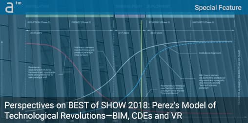 As we move through this article we will try to apply AEC IT innovations to a combined model that looks not just at the Hype-Cycle as we have done in the past (see 2016 Perspective article here) but at where this curve is being “pulled” or “stretched” by our sense of the overall Techno-Economic Paradigm shift emerging before us. (see image 03 – 04 next page)