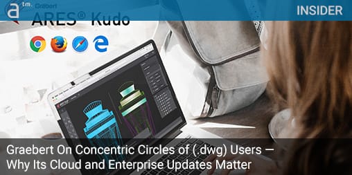 Graebert’s cloud technology, known as ARES Kudo, and its Trinity licensing approach are proving very valuable to enterprise-level customers; and among such customers, in particular, Graebert is seeing a clear trend of concentric circles of (.dwg) users, each with its own requirements for engaging with CAD data.