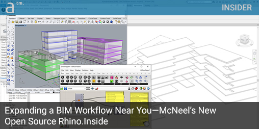 Dan Belcher of McNeel says that for years now, Revit and Rhino users have had at least seven different ways to hack in Rhino and GH geometry into Revit, but hacking up solutions is painful. Rhino.Inside for Revit—which functions as an add-on to Revit, like any other add-on to Revit—links up Rhino and GH (short for Grasshopper) APIs (application programming interfaces) with Revit APIs.