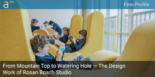 This contrasts strongly with how learning environments like traditional 20th-century schools were formulated. Firm founder and creative director Rosan Bosch says in her inspirational TEDx talk that we can positively change society by starting with the design of schools. In a school designed by her studio, students inhabit a boldly different kind of set of spaces, in sharp contrast to repetitive classrooms and arrayed desks.