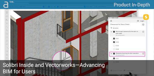 Solibri Inside is aimed at the designers using BIM authoring tools from the Nemetschek Group (like Vectorworks). Where before a Vectorworks user would have to export their BIM model to IFC and open it in Solibri Office, now the SaaS-based Solibri Inside technology brings model checking directly inside the host application.